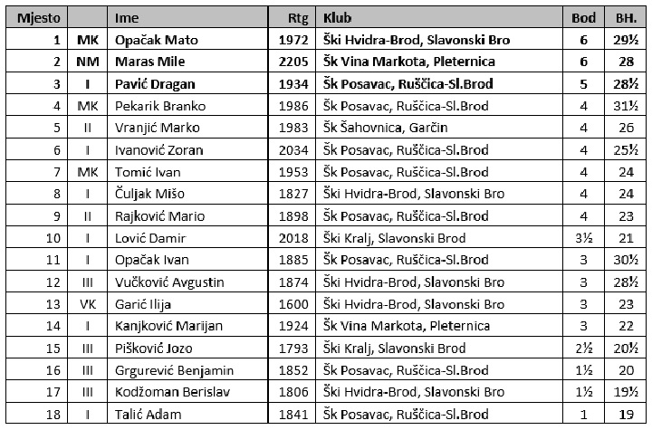 Pod pokroviteljstvom Ministarstva branitelja u organizaciji Šahovskog kluba invalida Hvidra-Brod iz Slavonskog Broda, održan je turnir povodom proslave 22. obljetnice Vojno-redarstvene akcije “BLJESAK”. Pojedinačni šahovski turnir odigran je u petak 21. travnja u prostorijama ŠK Posavac, Ruščica. Nastupilo je 18 igrača, a odigrane su 63 partije. Igran je švicarac 10 minuta kroz 7 kola. Sudac turnira je bio Dragan Pavić, CA.
