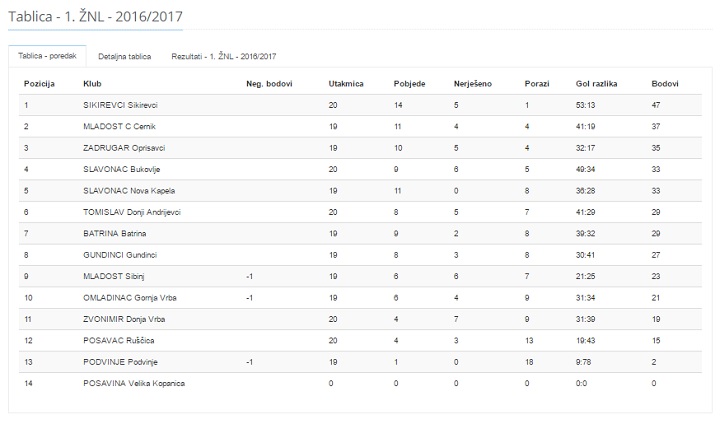 Nakon 21. kola u vodstvu su Sikirevci s 47 bodova, prati ih Mladost iz Cernika s 37, a treći je Zadrugar iz Oprisavaca s 35 bodova.