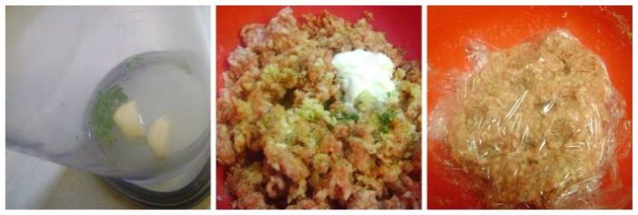 Mineralnu,češnjak i list peršina izmiksati u sjeckalici te dodati mesu.